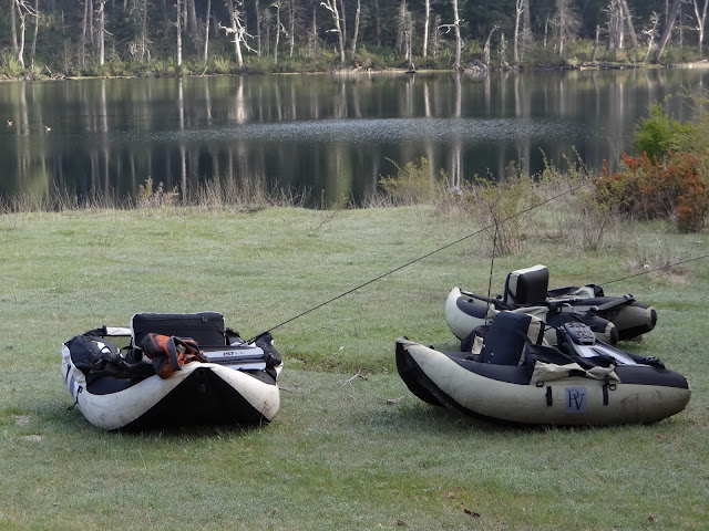 Después de un pequeño accidente en el que Patricio piso su caña y la rompió,no seria la única ese fin de semana, y tuviera que regresar al auto a buscar otra de repuesto.Embarcamos en los float y comenzamos a pescar toda la orilla del lago que prometía.